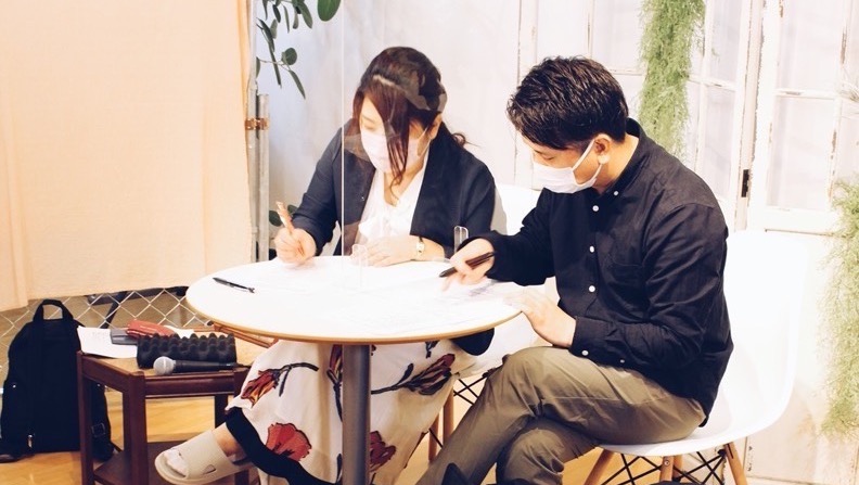 本番直前に急ピッチで台詞を考える二人。